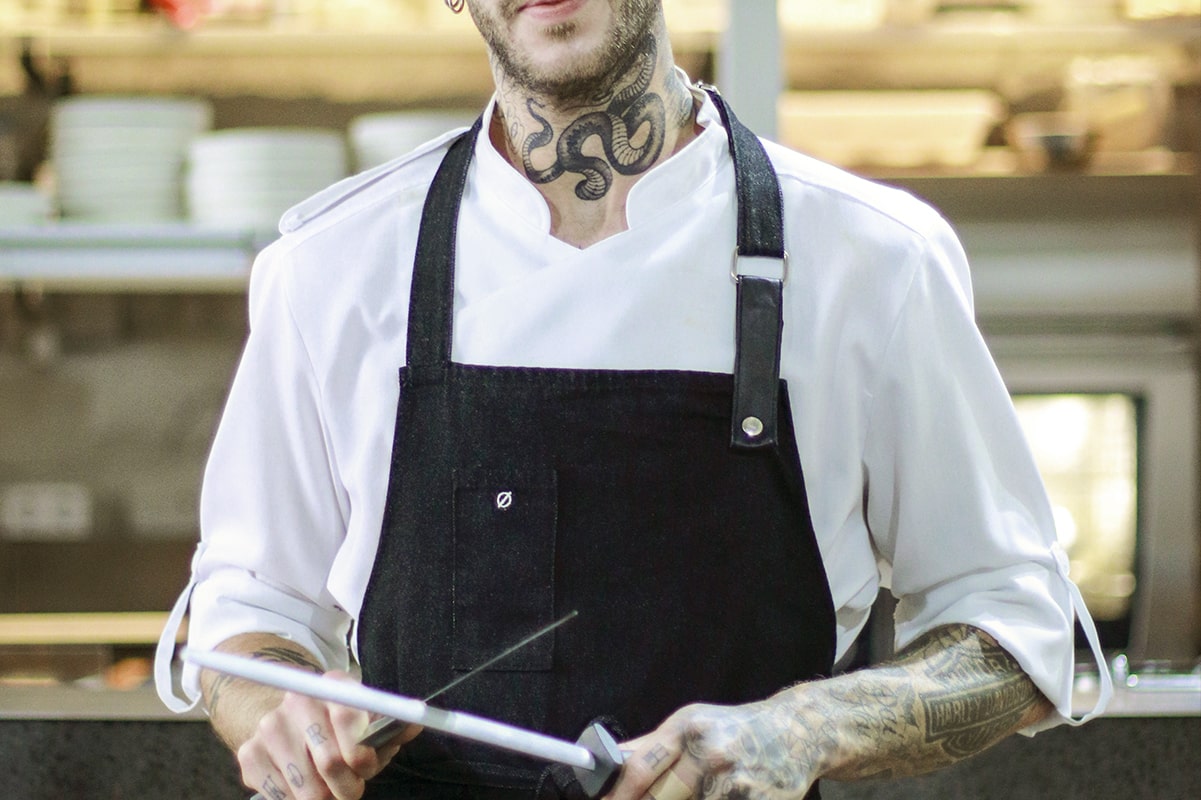 » Desarrollo de imagen de marca, desde logotipo a uniformes, diseñando una vajilla a medida fabricada por una artesana local (Laura Delgado).